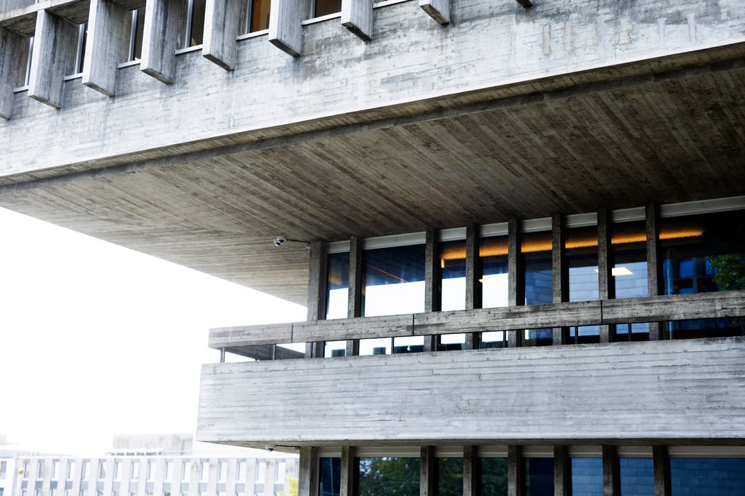 Bygget er et godt eksempel på betongbrutalisme. Det er mange som har lagt ned mye arbeid for å nå resultatet vi ser i dag.