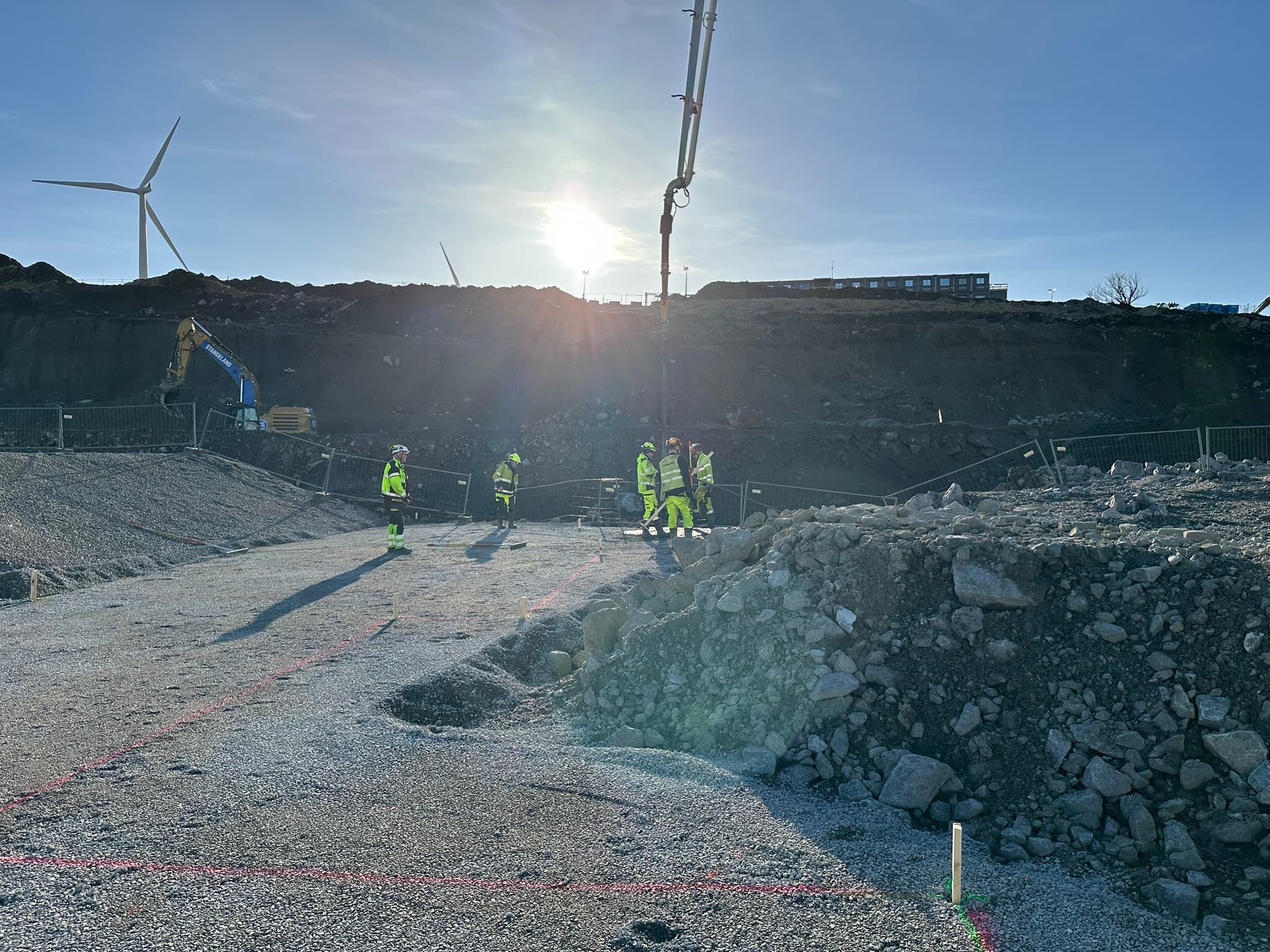 Det blir økt aktivitet på byggeplassen i løpet av mars måned. Det vil fremdeles være arbeid med å frakte masser, men arbeidet går nå også over i en ny fase. Det blir forberedende arbeid og planering for betongarbeid, og arbeidet med å støpe fundamenter starter opp.