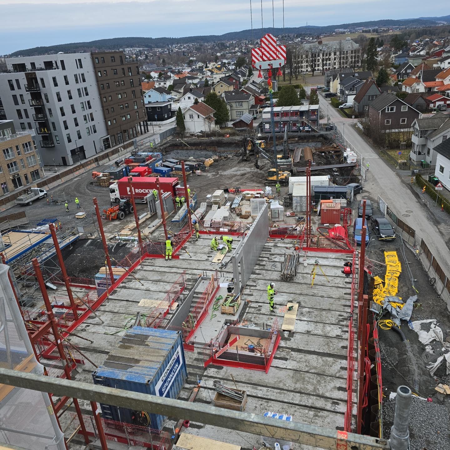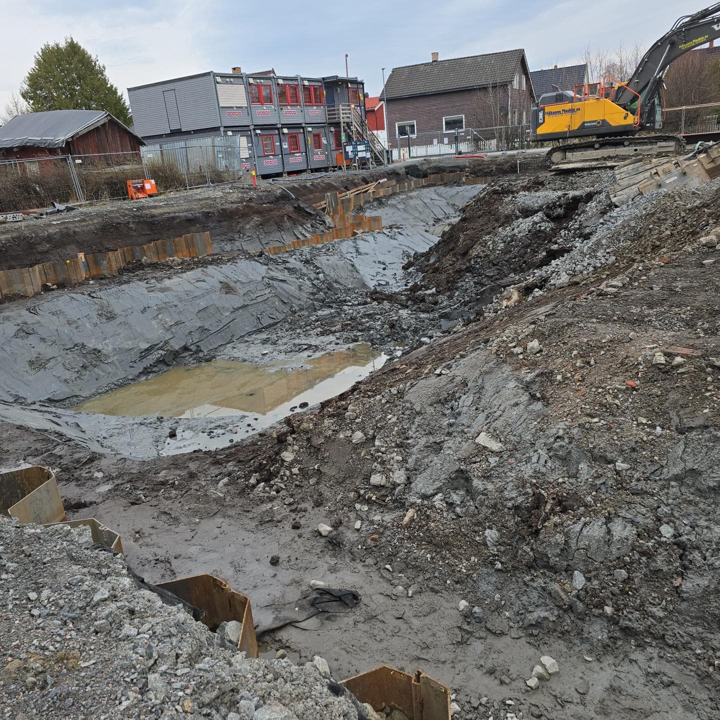 Vi har startet utgravingen for byggetrinn 2. Dette innebærer uttransport av masser fra byggegropen, og det vil derfor forekomme økt anleggstrafikk i området.