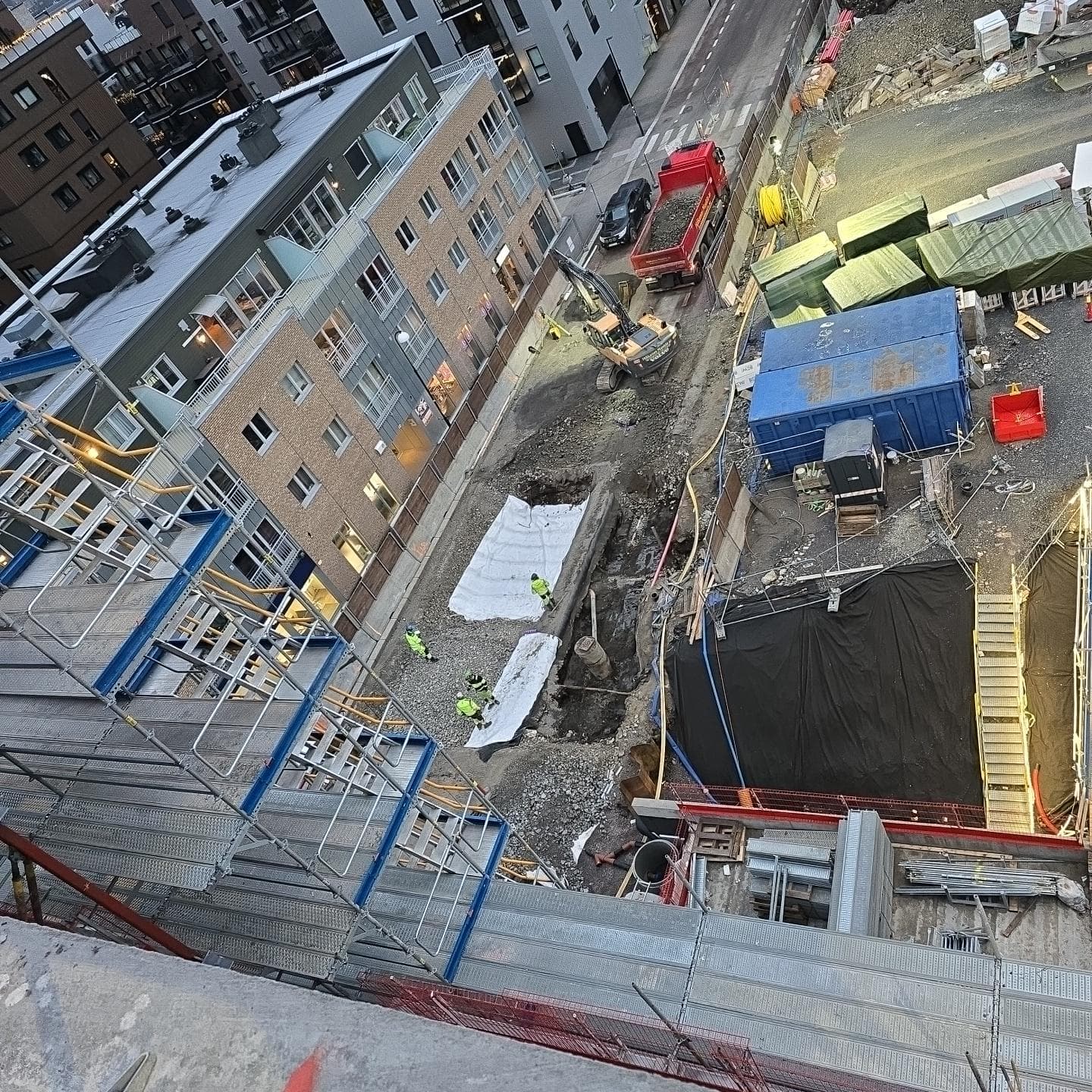 Vi ønsker å gi dere en oppdatering på fremdriften i prosjektet: Fase 3 starter i begynnelsen av uke 50 I begynnelsen av uke 50 vil arbeidene i Nittedalsgata beveger seg videre til fase tre. Dette vil innebære en endring i kjøremønsteret. Se bildet nederst på siden. Råbyggmontasje Bygg 6 nærmer seg ferdigstillelse Nå som råbyggmontasjen for bygg 6 nærmer seg ferdig, starter vi med montering av yttervegger og arbeid på taket. Dette er et viktig steg mot lukking av bygget. Oppstart råbyggmontasje Bygg 5 Parallelt med ferdigstillelse av Bygg 6, går vi videre med råbyggmontasje for Bygg 5.