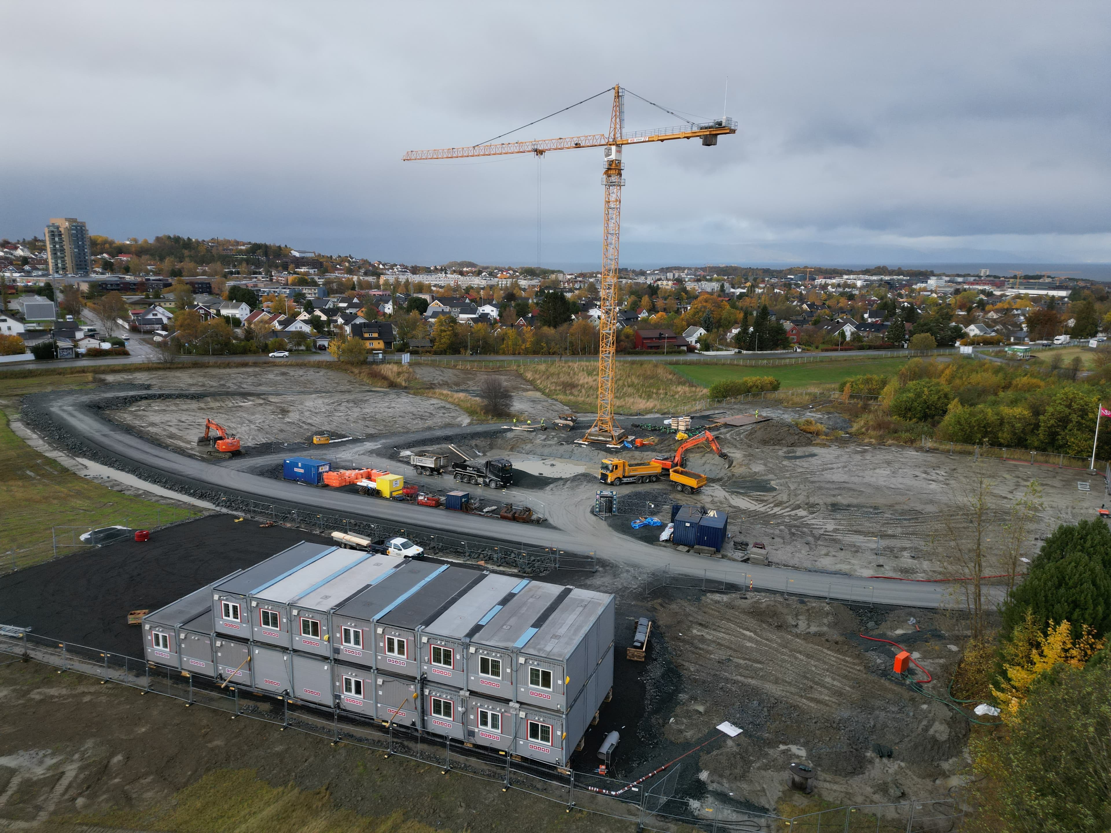 - Kranen rager 47 meter til værs, med en utligger på 60 meter, og vil bli et kjent syn på Brøset fremover.